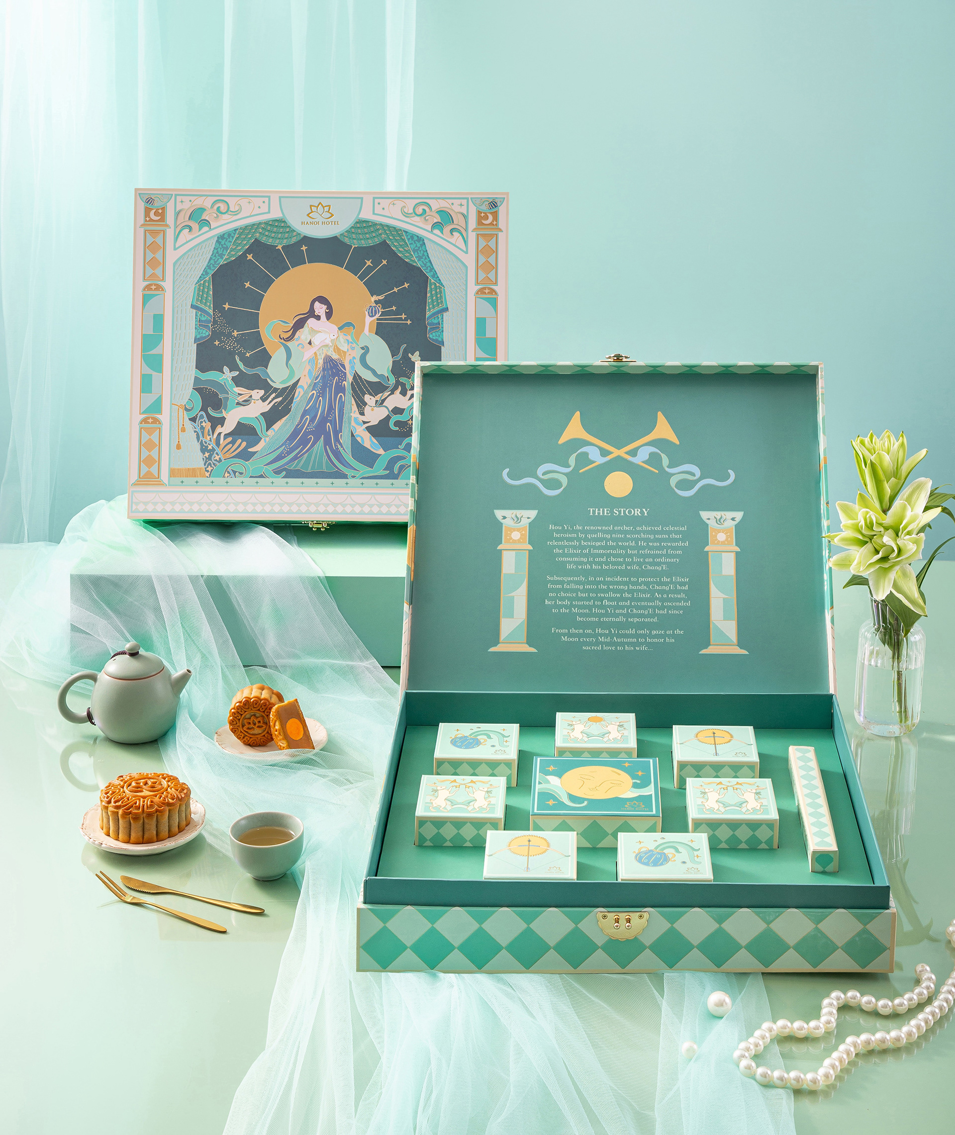 Illustration series for the packaging of Hanoi Hotel 2024 Mooncake collection